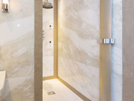 The wellness suite was designed with a nod to Japanese daily bathing rituals, with a very large walk-in shower with a drying area to avoid wetness, a sliding opaque privacy screen in a traditional Japanese style opens to reveal a tranquil space with a double wash bowl configuration.